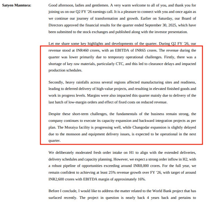 Take TRIL, for instance, which had a soft quarter recently. But that had nothing to do with their order book, which was strong. The issue was that they couldn’t source enough specialized copper conductors on time, and some shipments got stuck in customs when new BIS rules were introduced. Even when equipment is ready, dispatches can slip if monsoon delays hold up substation sites.