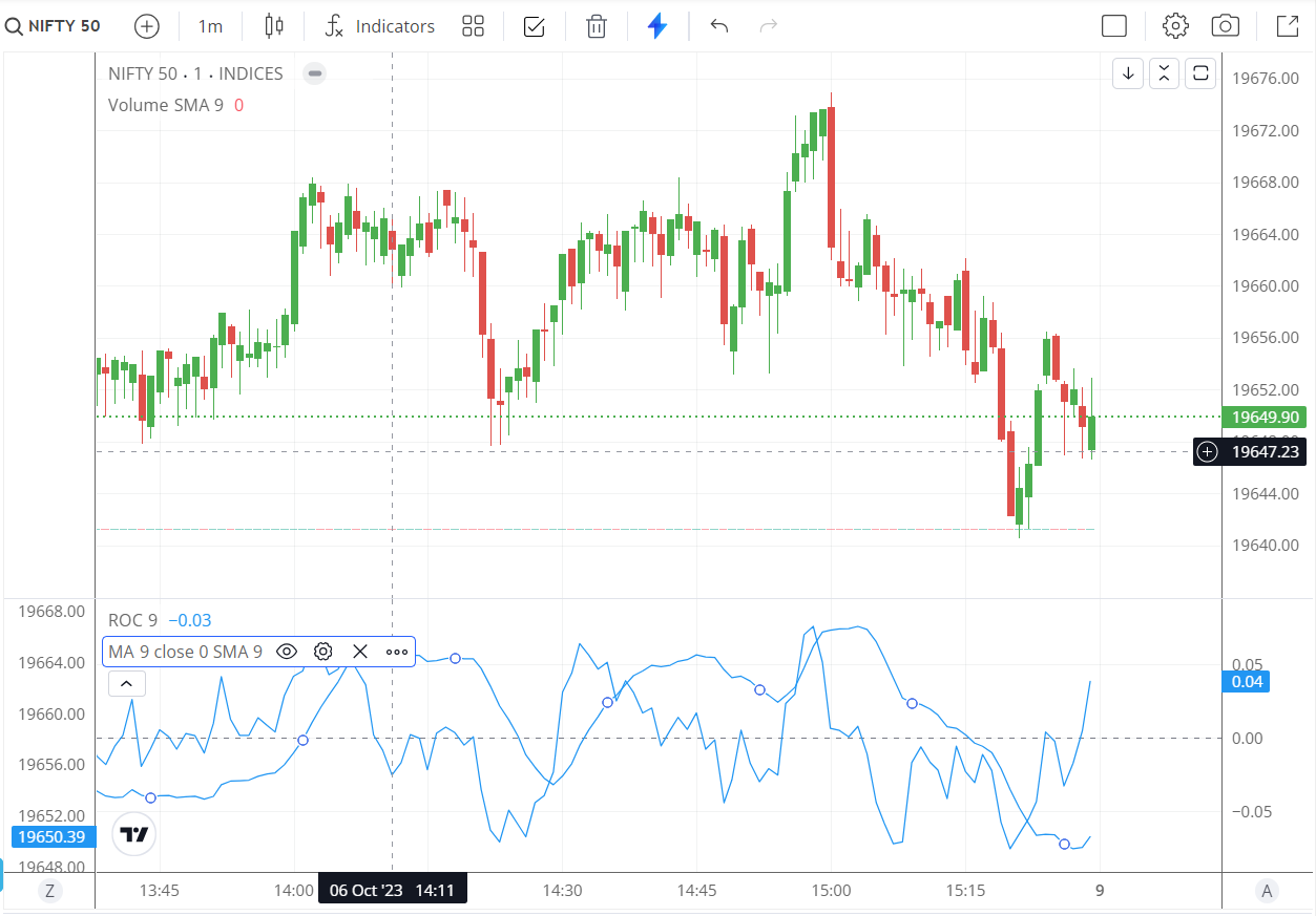 see in this photo the value on SMA is taken on ROC; however, dragging takes the data from the symbol, not the indicator. Same can be done in ChartIQ too.