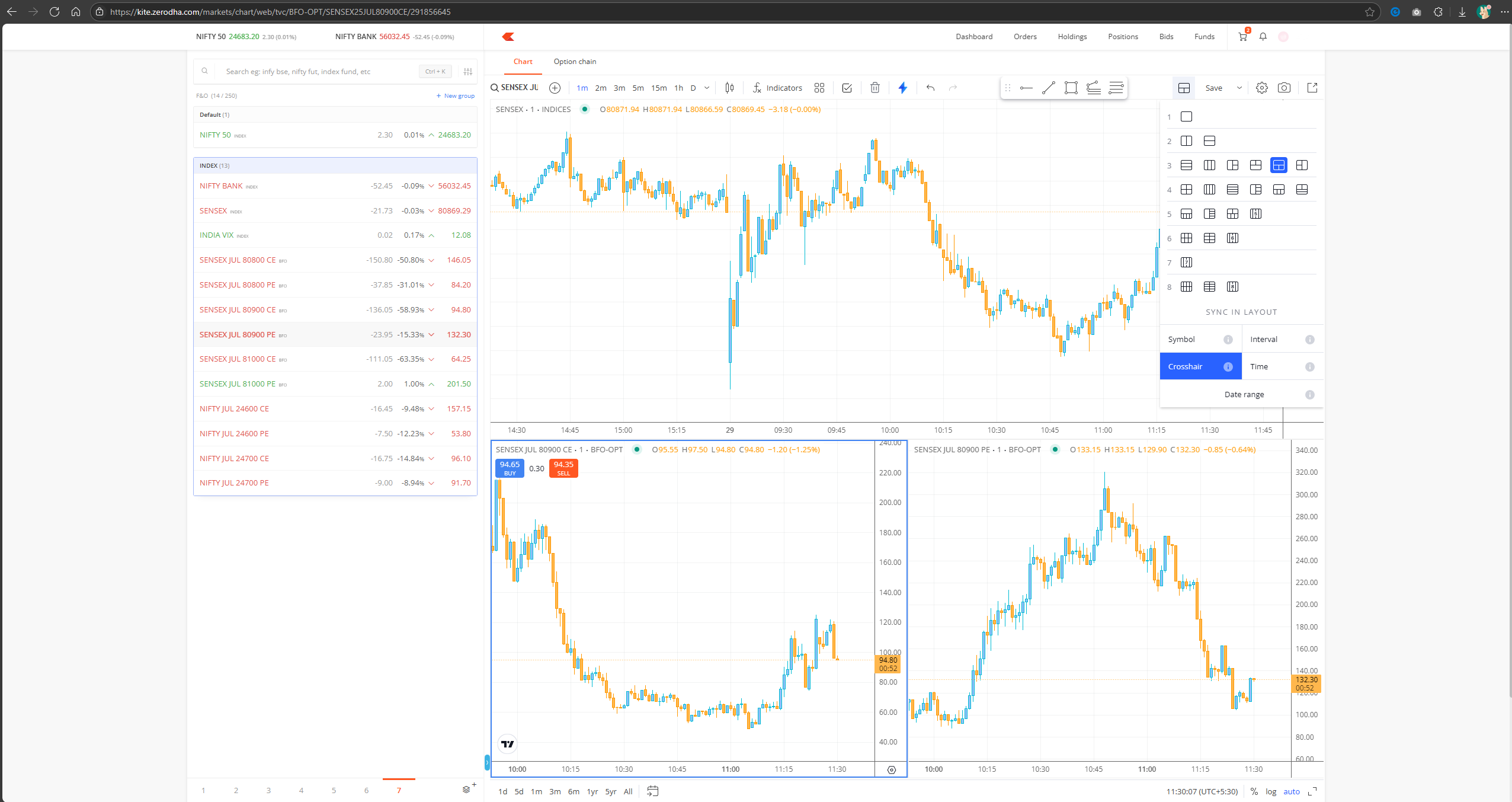 anyone from technical team kindly re-enable buy sell button on all the charts layout not only on active chart.