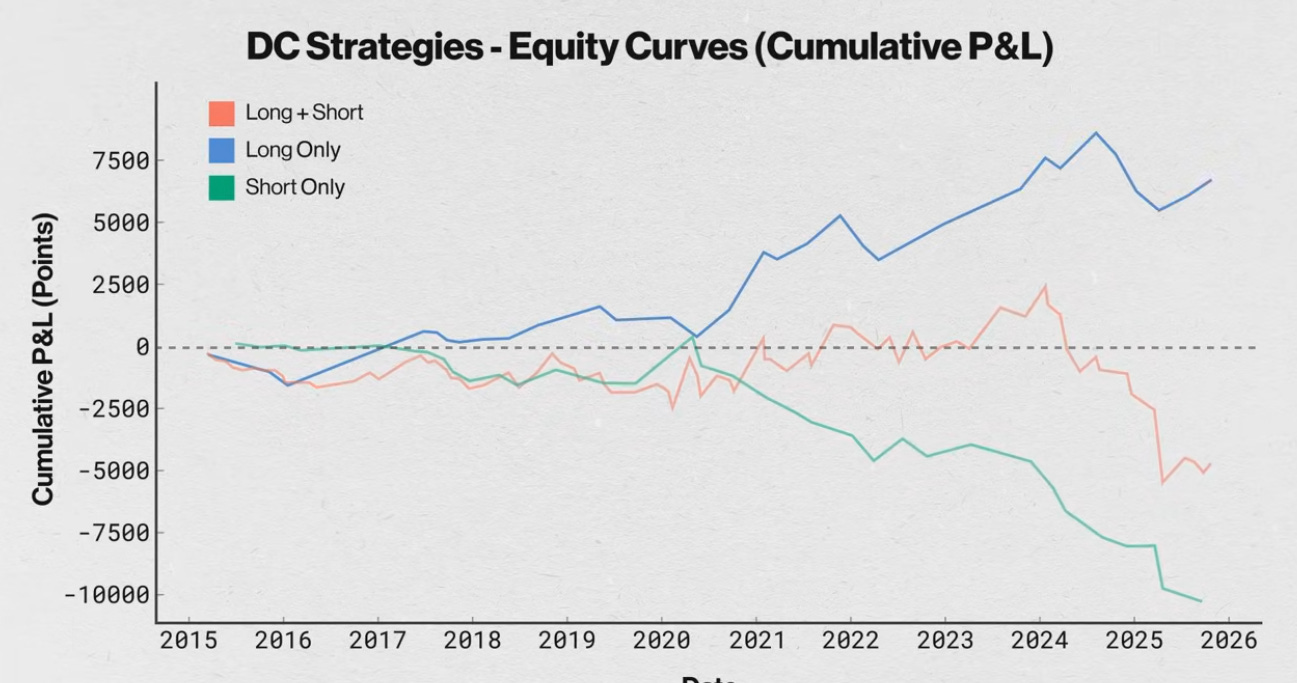 We tested three variants: Long/Short combined, Long only, and Short only.