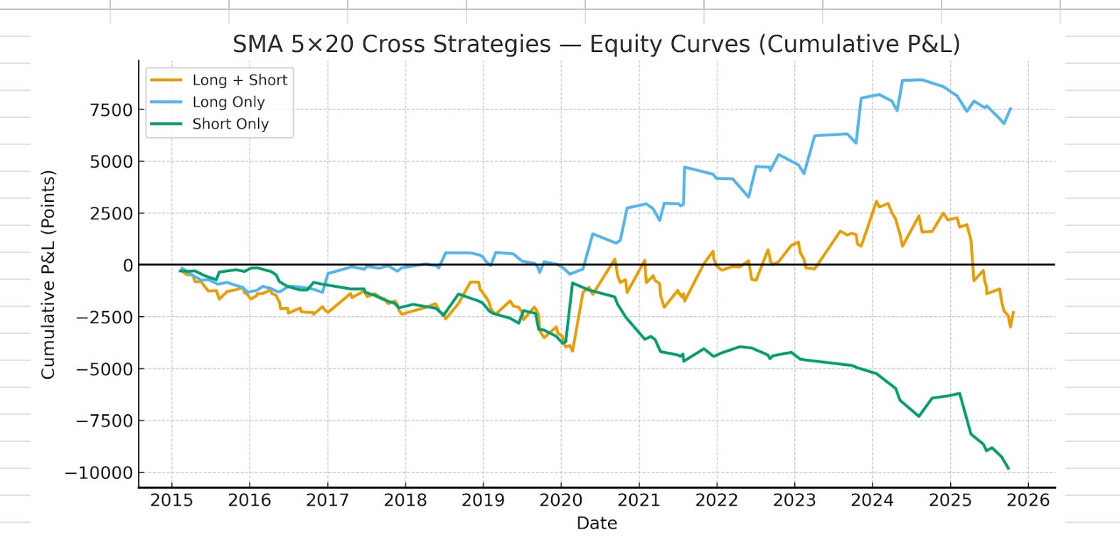 Rather than predicting where prices will go, it simply reacts to what prices are doing — buying when an uptrend is confirmed, selling or shorting when a downtrend is confirmed, and using strict rules to manage risk and exit. It’s one of the most intuitive and simplest forms of systematic trading — based entirely on price behavior.