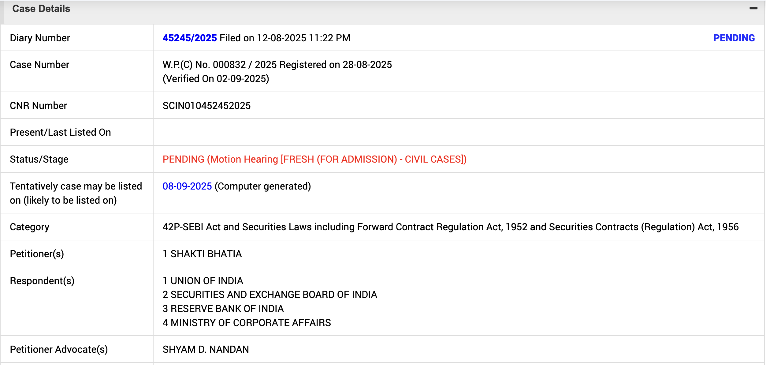 I remembered there were a few PILs for the Adani case. The petitioner is pushing SEBI and RBI to speed up carrying out investigations. Good to see that he is protecting investors interests!