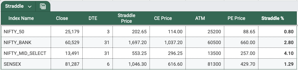 NIFTY’s 0DTE ATM straddle closed at 203 points , implying a 0.8% move on either side. Last week’s 2DTE premium ahead of the monthly expiry was 238 — so this is a healthy premium going into the first weekly expiry of March, especially with the weekend factor.