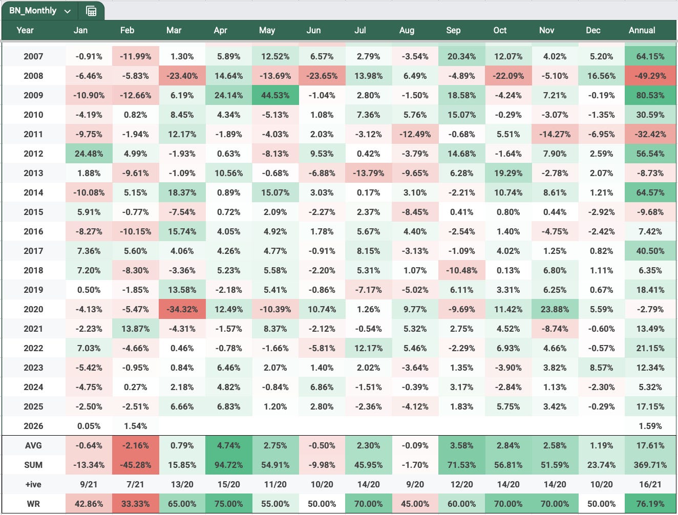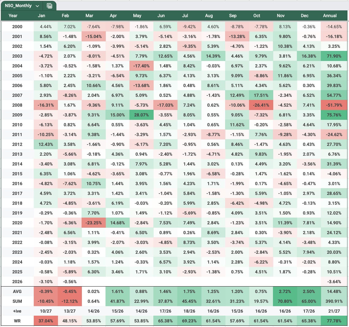 Over to the nifty monthly seasonality chart.