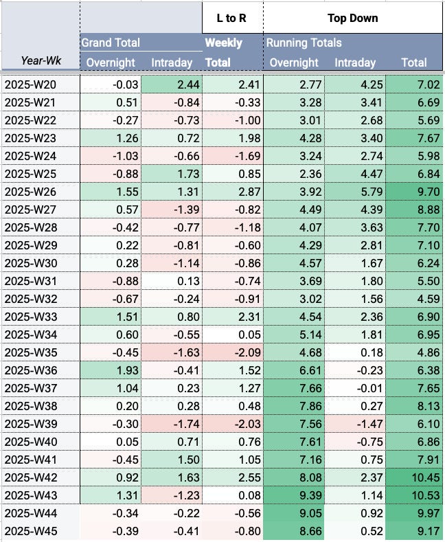 Looking at 2025 year-to-date, NIFTY has gained roughly +8.66% from overnight moves, but only +0.52% from intraday moves.