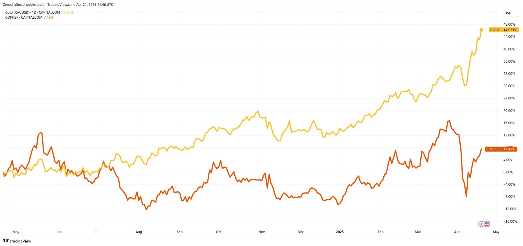 Gold going up is not a good thing, and copper going down is definitely a bad thing.