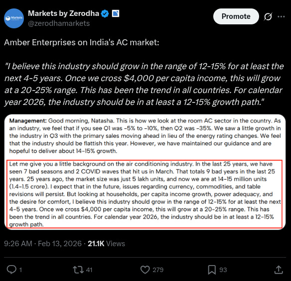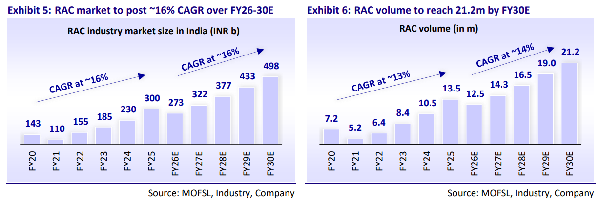 Right now, India is where China was in the mid-1990s. And China’s growth since then is staggering: urban AC penetration went from 5% to nearly 100% in just 15 years. They added over 200 million ACs in that window. India may be at the start of that same curve. We’re selling about 10-11 million ACs a year right now, and could double this by FY30.