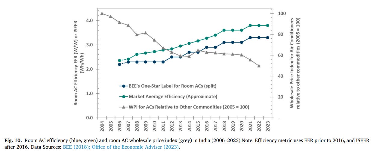 Now, the 1-star band — the very bottom of the star system — is effectively India’s Minimum Energy Performance Standard, or MEPS. Any AC that falls below 1-star efficiency simply cannot be legally sold in India. In an ideal scenario, as ACs become more efficient over time, the MEPS should increase in order to reflect how much better the baseline AC has become.