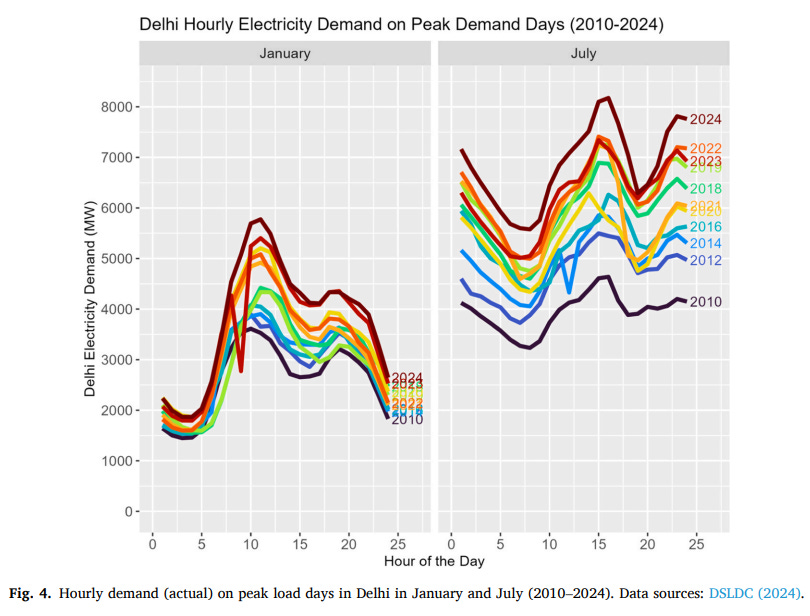 In 2024, India’s national peak electricity demand crossed 240 GW, to which room ACs alone contributed 40–50 GW. In just Delhi, peak electricity demand has nearly doubled between 2010-2024 to over 8,500 MW in 2024, driven primarily by cooling.