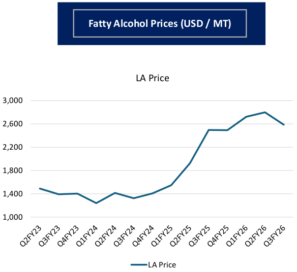 The real story, this quarter, was that global prices for “fatty alcohols” have been unusually high. These are the building blocks behind the surfactants in your soap or shampoo (even if “fatty alcohols” sounds like the opposite of anything beauty).