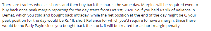 Q : But If I keep VAR+ELM money in cash and square off at the end of the day there is no short margin penalty. Is my understanding correct