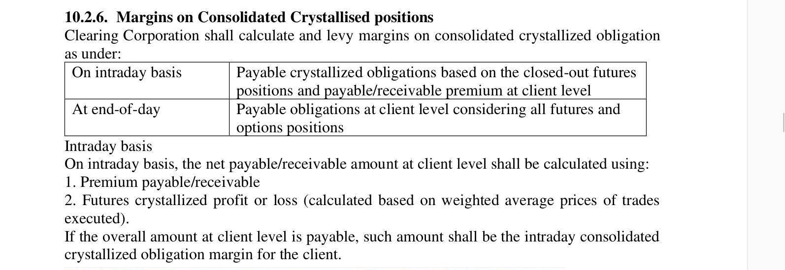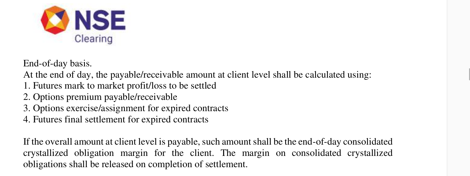F&O obligation - The margin obligations are payable upfront, and any MTMs are charged to the broker funds on T day itself. It’s just that clients are given time until T+1 to fulfil MTM margin obligations from a margin reporting perspective. This does not mean that the CCs don’t charge the MTM obligation of T day to the broker. In the absence of client having funds, the broker fulfils the MTM obligation on T day itself, and hence is liable for interest charges. Time is given to the client to bring in MTM obligation by T+1 failing which margin penalty is applied by the Stock exchange which is collected from the client.